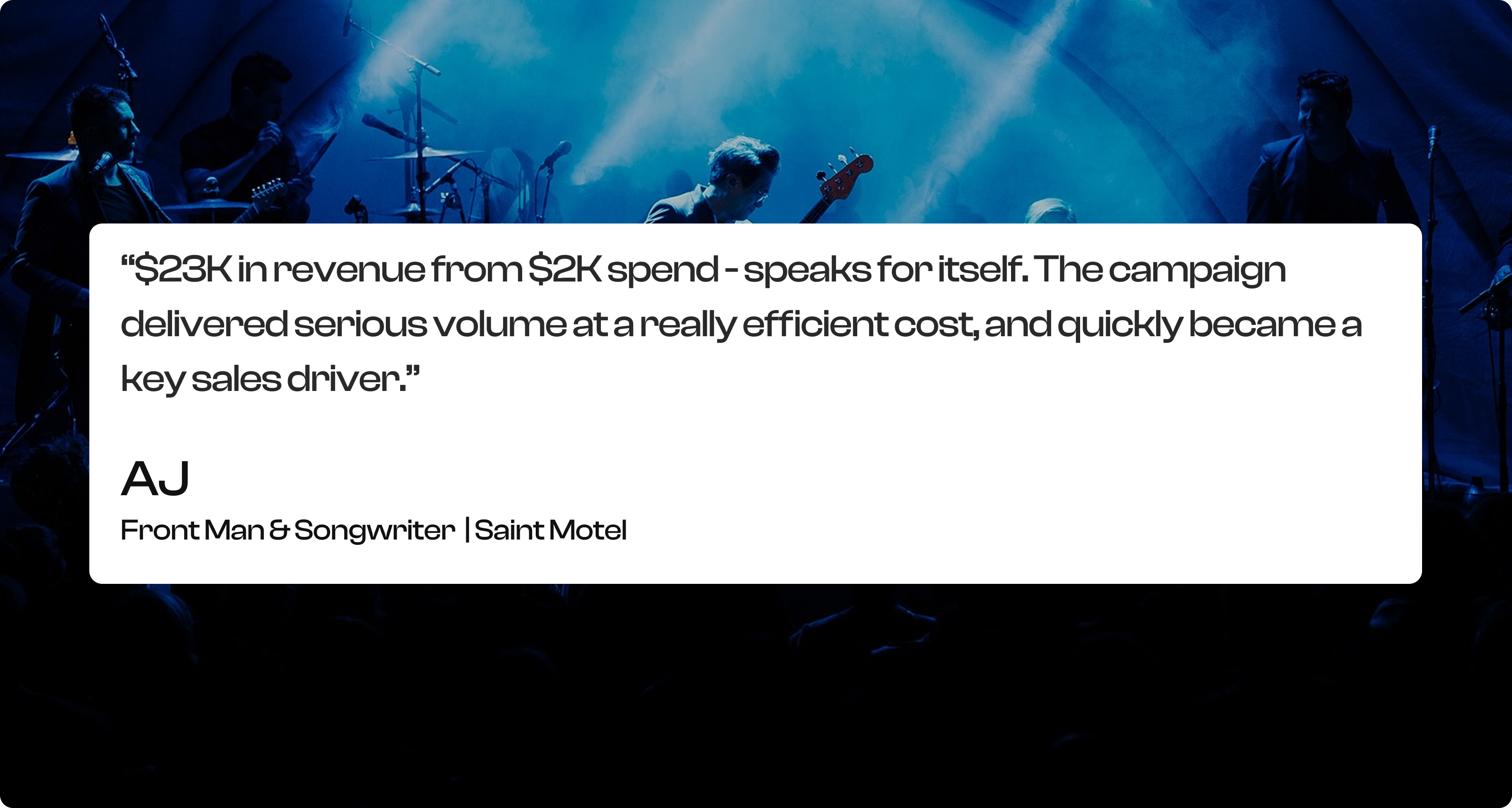 โ$23K in revenue from $2K spend โ speaks for itself. The campaign delivered serious volume at a really efficient cost, and quickly became a key sales driver.โ